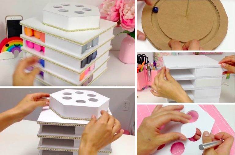 L’engouement pour les rangements rotatifs est plus que compréhensible. Contrairement à un rangement lambda, on peut retrouver ce qu’on y cherche en un clin d’oeil car tout est bien organisé et accessible. Nous ne résistons pas à l’envie de partager cet autre rangement idéal pour les fournitures de bureau, les peintures ou le maquillage.